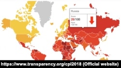 Баҳои 28 гирифта, Русия аз соли 2017 як хол поён рафт, ки ин, бо вуҷуди ҳуқуқҳои заифи сиёсӣ ва шаҳрвандӣ ва системаи бесамари тафтишу назорат коҳиши табиӣ мебошад. Чунин баҳои паст инъикоси ғайби боварӣ миёни мутахассисон ва соҳибкорон нисбати қобилияти ҳукумат барои иҷрои чораҳои босамари зиддифасодӣ мебошад.